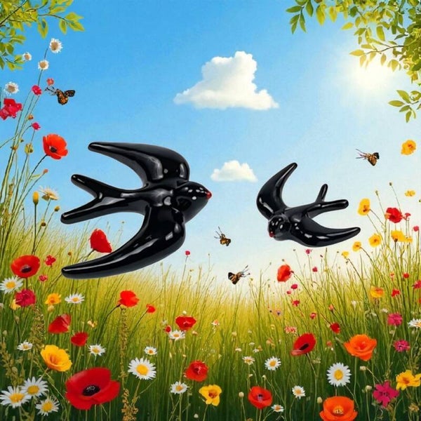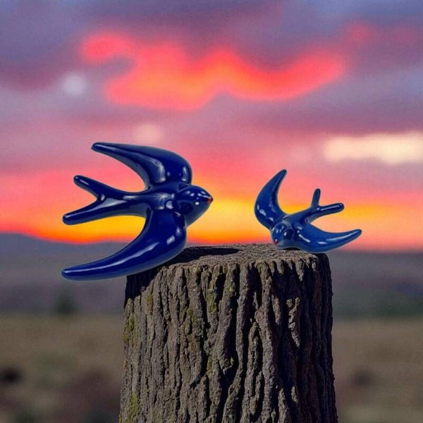 Breng een sprankje zon en warmte naar je buitenruimte met deze keramiek zwaluwen, handmade. Beschikbaar in 2 formaten: