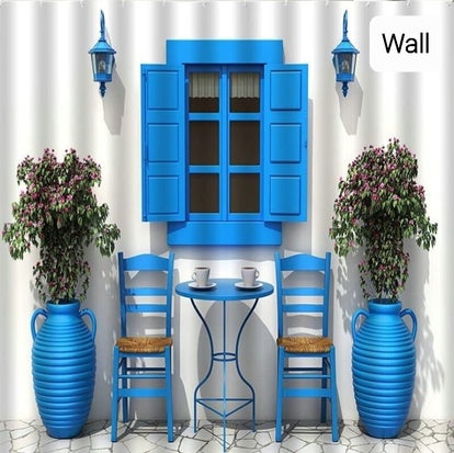 Petros griekse tuinen Glazen Blauwe Deurgordijn
