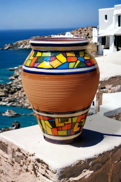 Gemaakt met unieke materialen; Kretenzische aarde en water dat 18 uur lang gebakken is tot 1150o C. Zeer duurzaam in extreme weersomstandigheden (ijs,vocht,hitte, plotse temperatuurschommelingen, etc.)