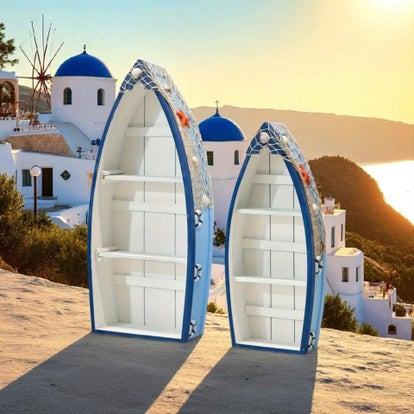 Leuke Blauw Witte Vogelhuisjes in Griekse sferen.